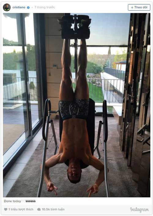 Qua những bức ảnh dưới đây, chúng ta cũng có thể phần nào biết được những bài tập bổ ích nhất ngay tại nhà đã giúp Ronaldo duy trì được phong độ đỉnh cao của mình khá lâu. Và biết đâu những bài tập này cũng sẽ bổ ích cho chính chúng ta, những người cũng cần có một chút sự ám ảnh về sức khỏe cũng như là vóc dáng của mình giống nhưRonaldo vậy.